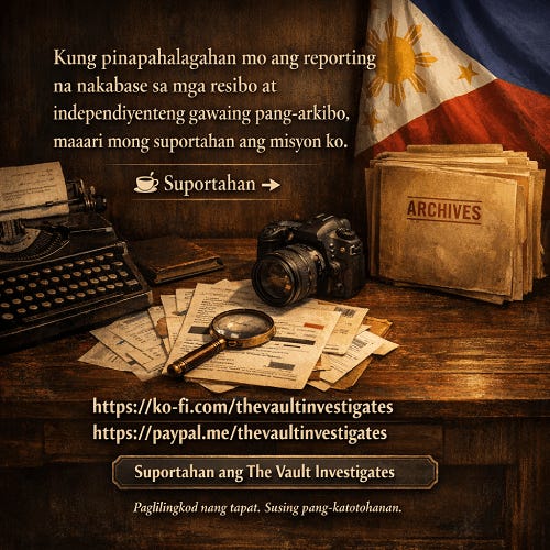 Ang mga tagasuporta sa pamamagitan ng Ko-fi ang nagpopondo sa imbestigasyong ito at tumatanggap ng access sa buong pagsusuri, mga resibo, mga timeline, at dokumentasyong pinagmulan.