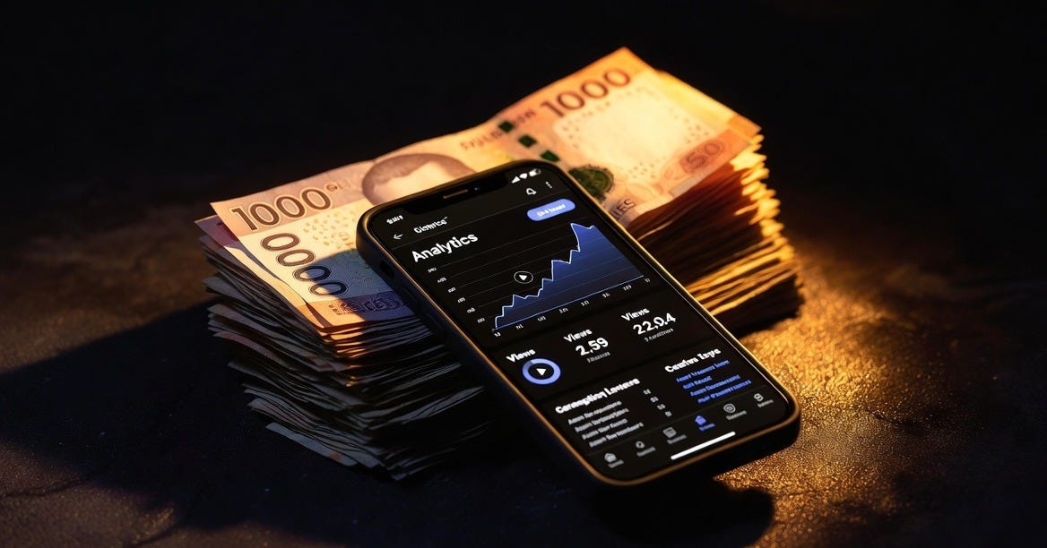 CPM — Cost Per Mille — is what advertisers pay per 1,000 views. In the United States, average CPM runs $6 to $15. In the United Kingdom, $5 to $12. For a Filipino audience watching local content, CPM drops to $0.50 to $2. But for a Western audience watching Philippine poverty content — CPM climbs back to $3 to $10.